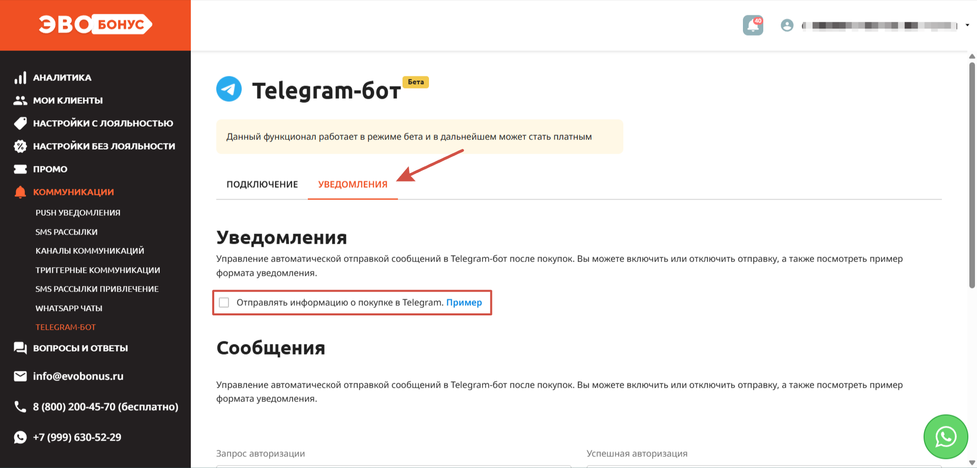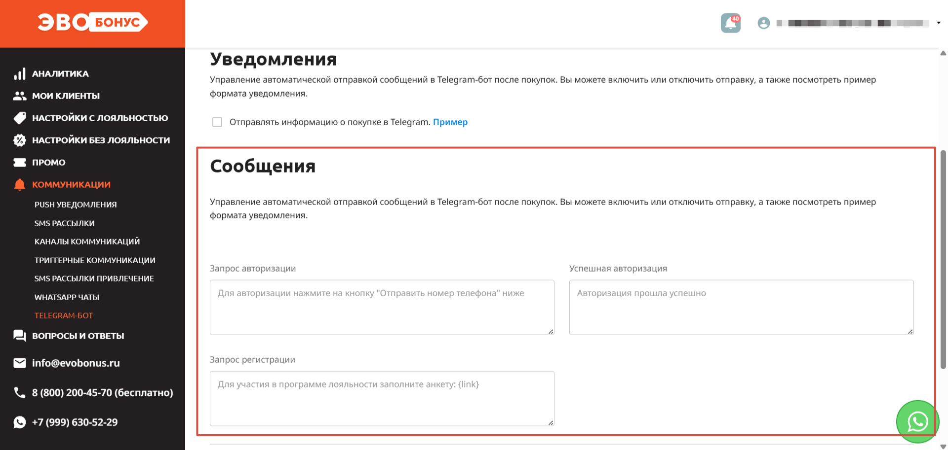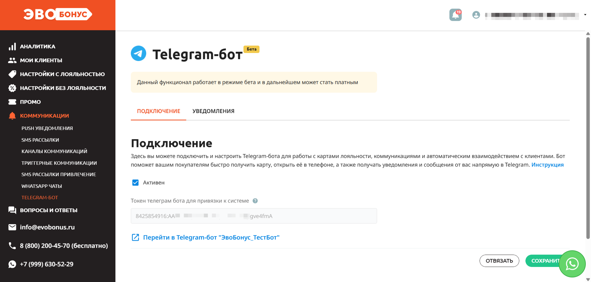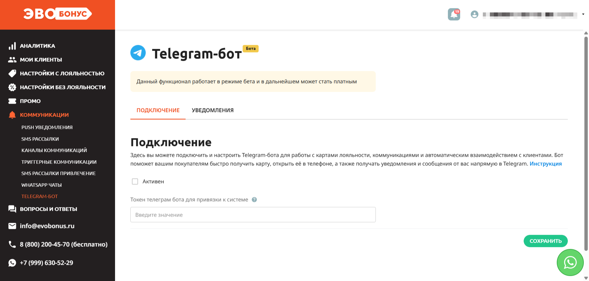 Инструкция создания и подключения Telegram-бота в ЭвоБонус